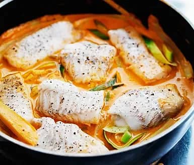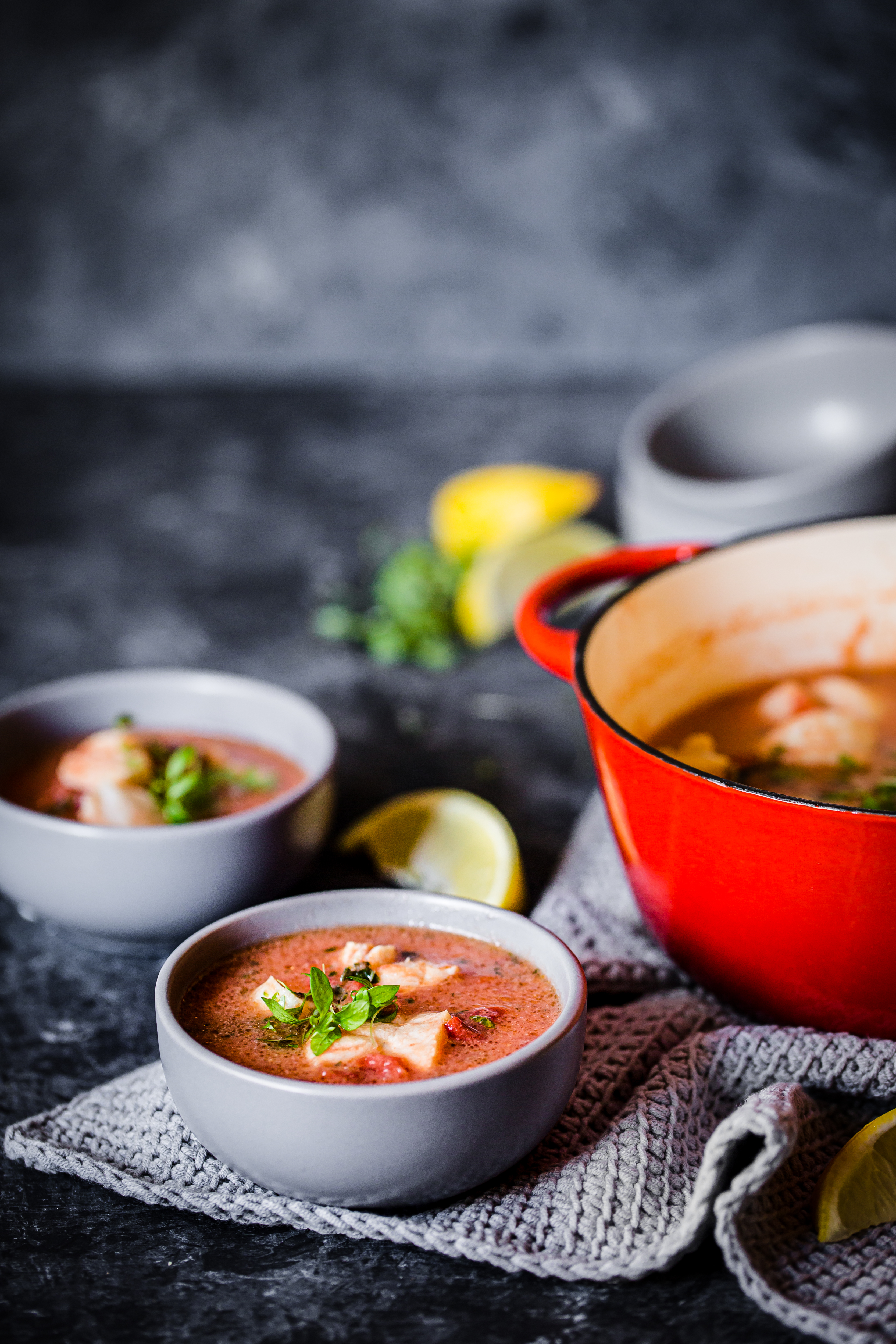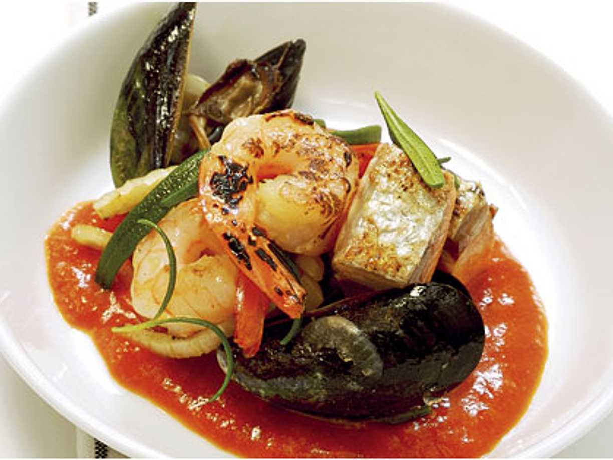 Krämig fiskgryta med musslor, tomat, saffran och vanilj