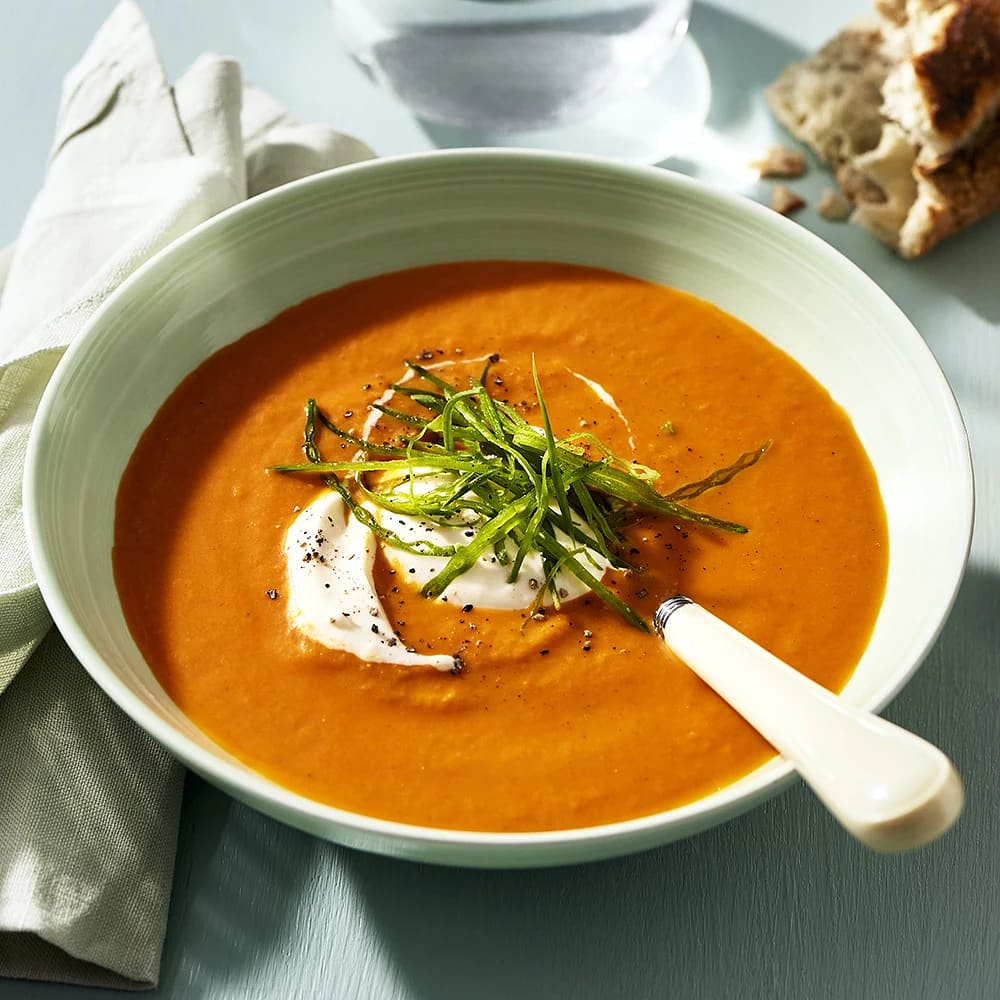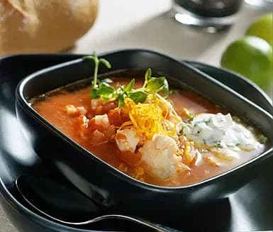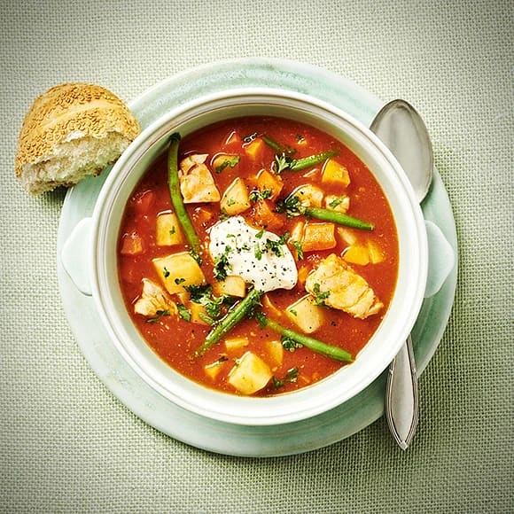Tomat- och fisksoppa med parmesancrème fraîche