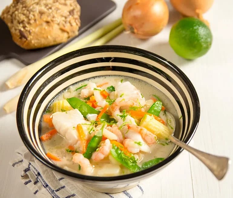 Fisksoppa med röd curry och lime
