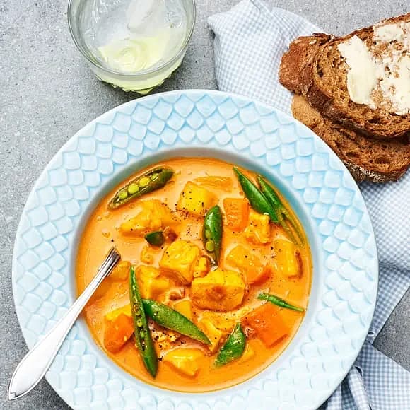 Fisksoppa med smak av curry och tomat
