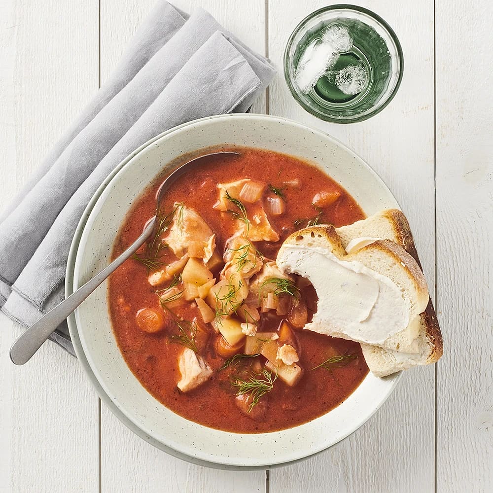 Fisksoppa med tomat och dill