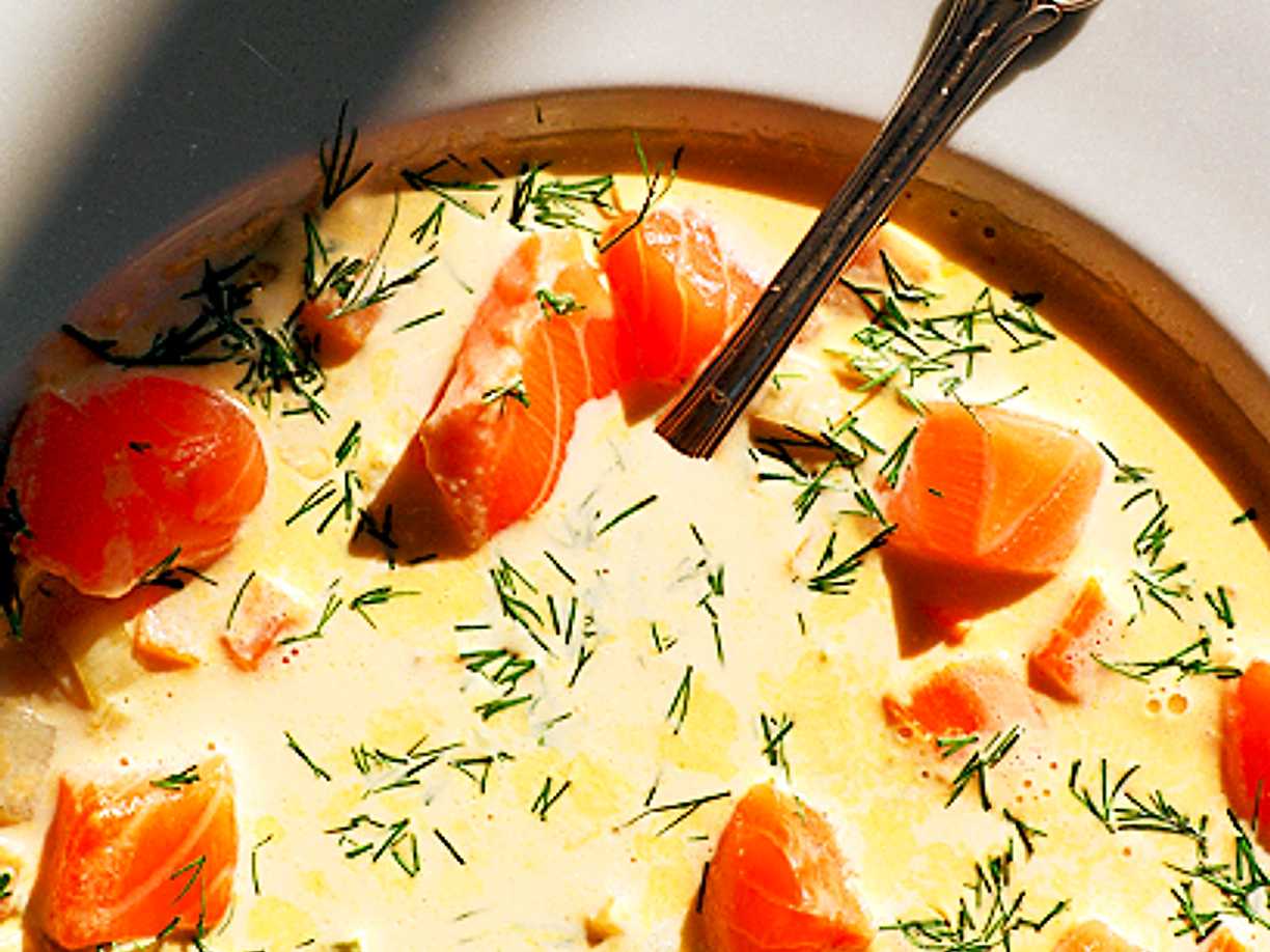Flickornas fisksoppa med lax och kräftstjärtar