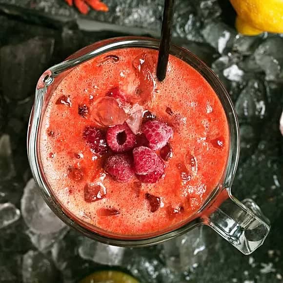 Melonjuice med hallon och fläder