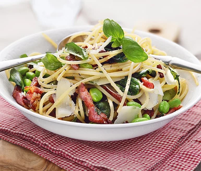 Dan dan nudlar - Äggnudlar med krispigt fläsk i mustig sås