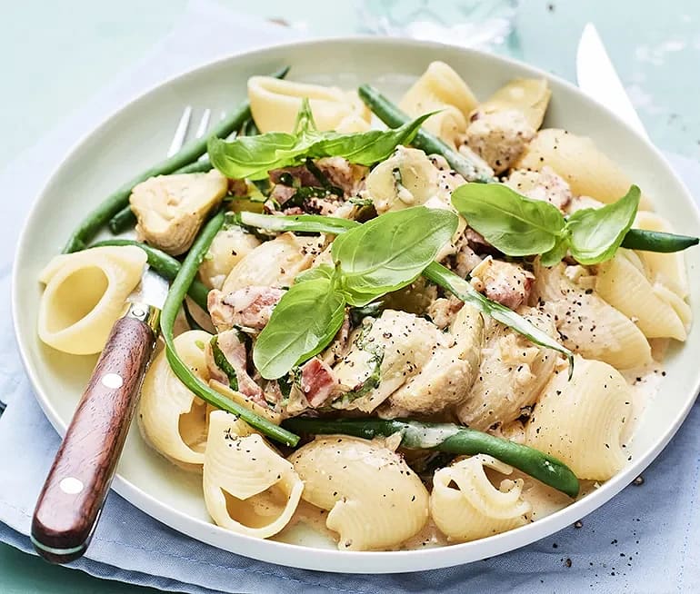 Korv Stroganoff med rökt fläsk, paprika och rosmarin