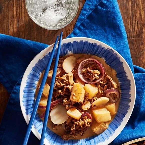 Fläskfärs i kokosmjölk med vattenkastanjer