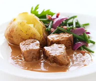 Sous vide fläskfilé med potatisgratäng och rödvinssås med björnbär