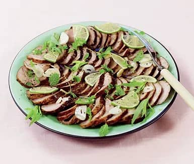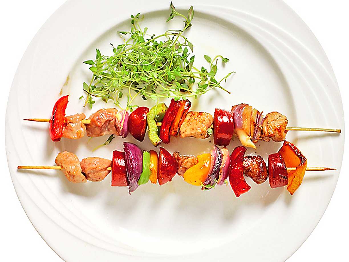 BBQ-glazad fläskfilé med grillad paprika och lök