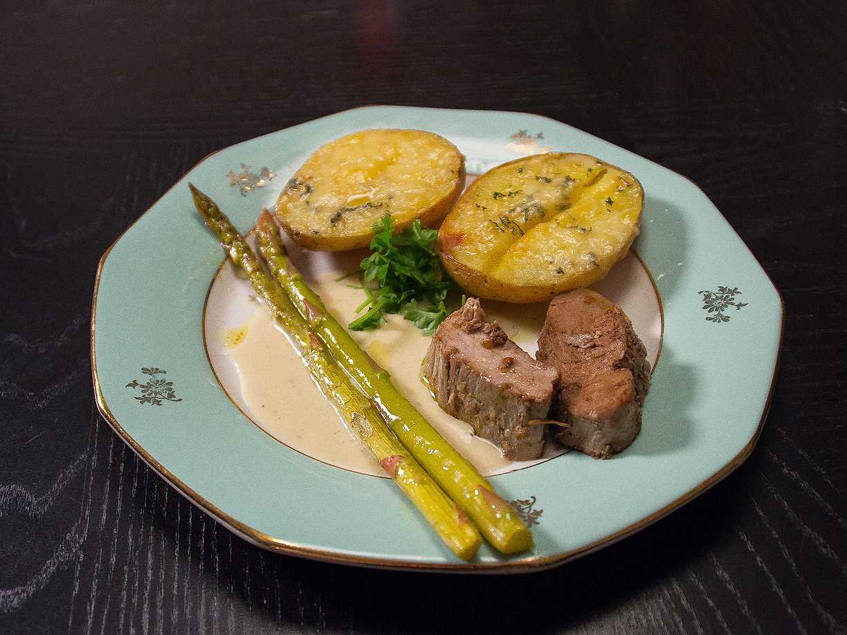 Fläskfilé med madeirasås och ugnsbakade grönsaker