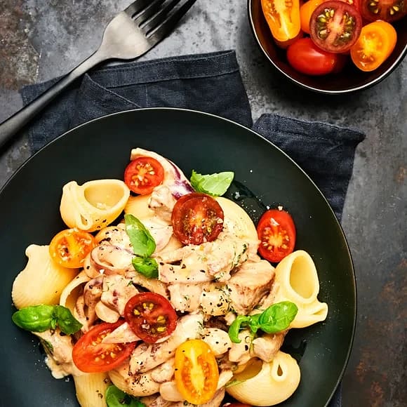 Krämig fläskfilégryta med svamp och soltorkade tomater