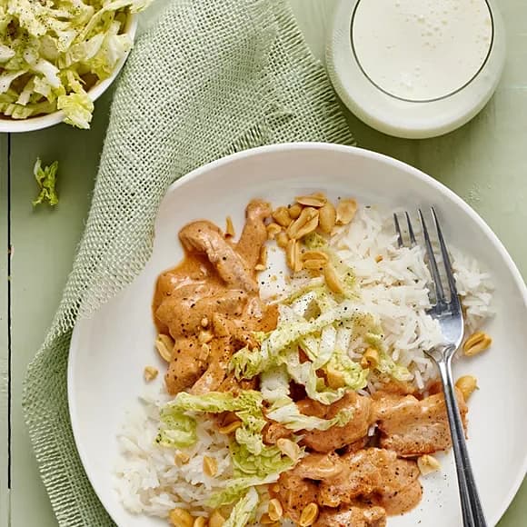 Fläskfilégryta med jordnötter