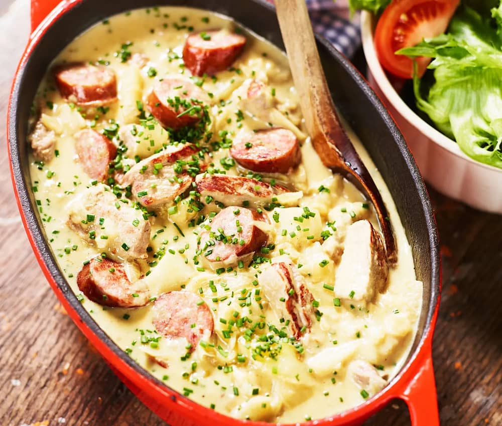 Fläskfilégryta med ost- och senapssås