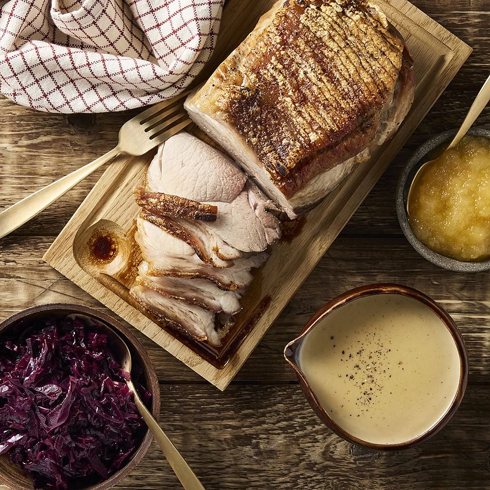 Skånsk fläskstek med sötsur bysselkål och ugnsgrönsaker
