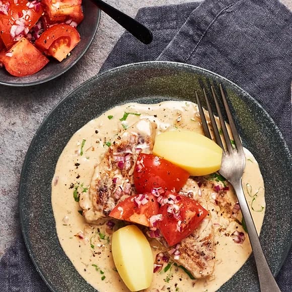 Salviakryddad fläskytterfilé i gräddsås med färskpotatis