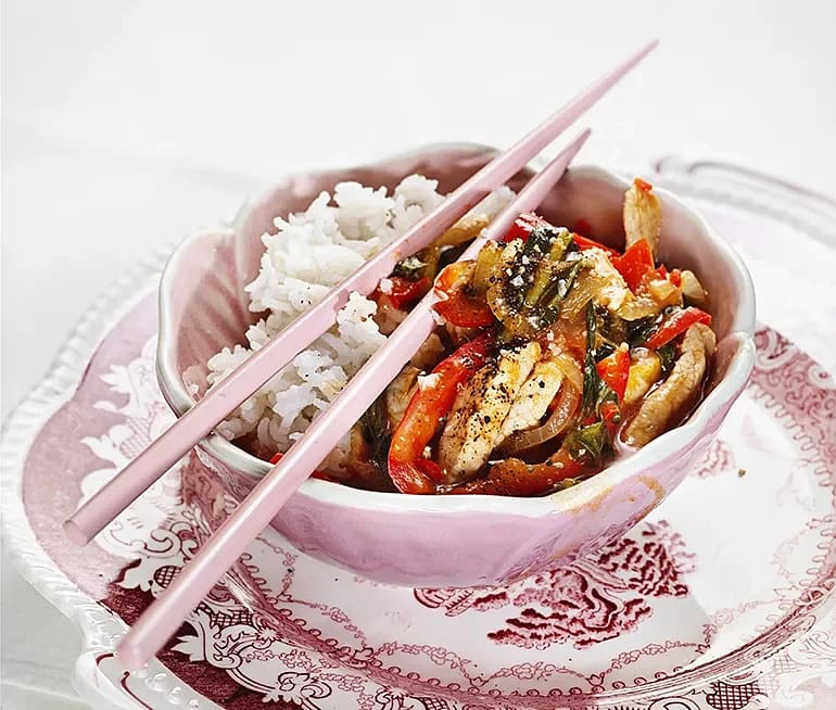 Sötsur fläskytterfilé med ris