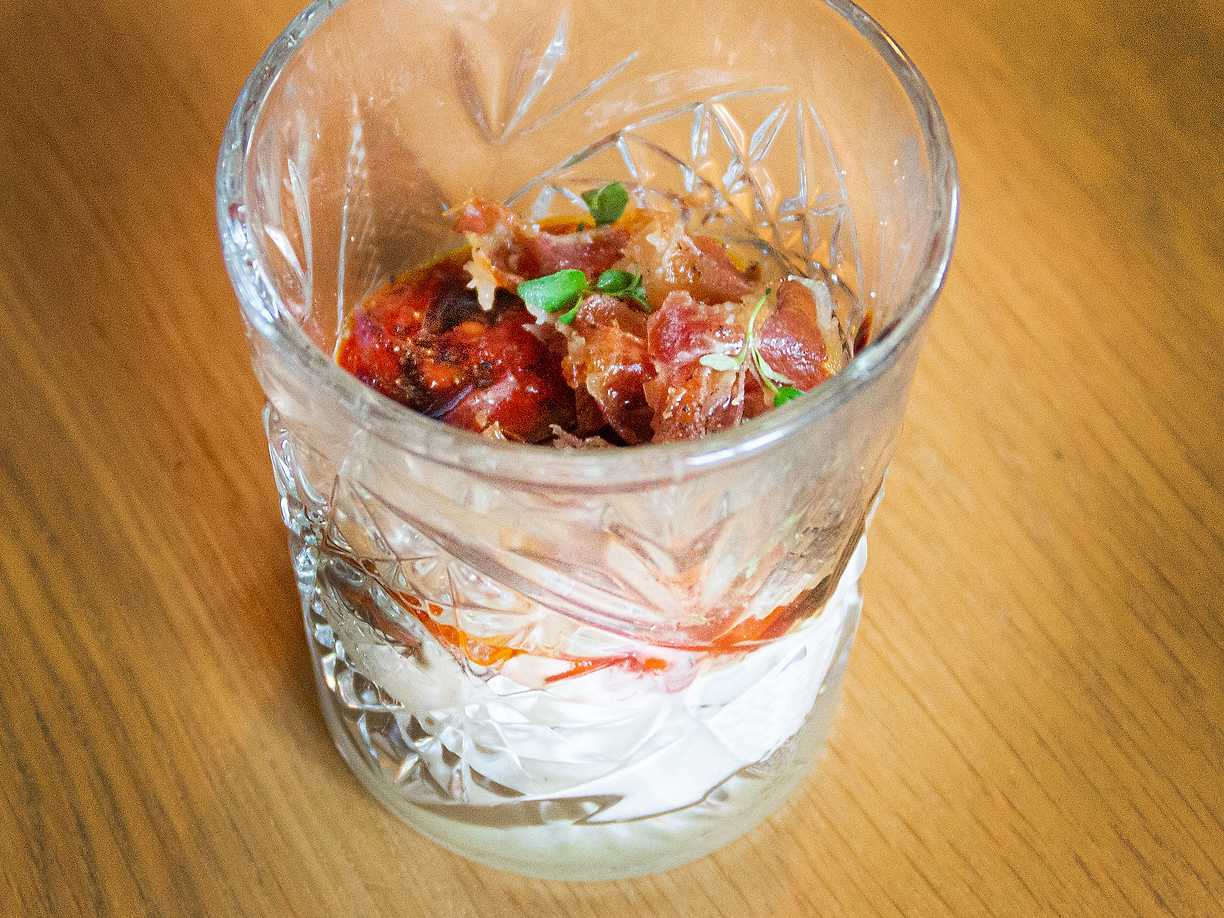 Tartar på oxfilé med misomajaonnäs och lotusrotchips