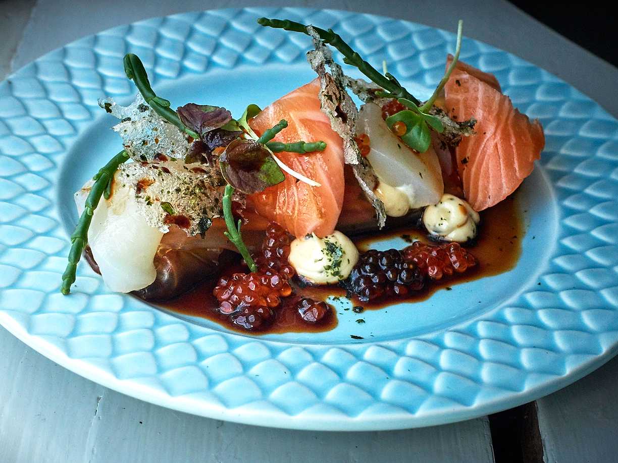 Färgglad lax på fat
