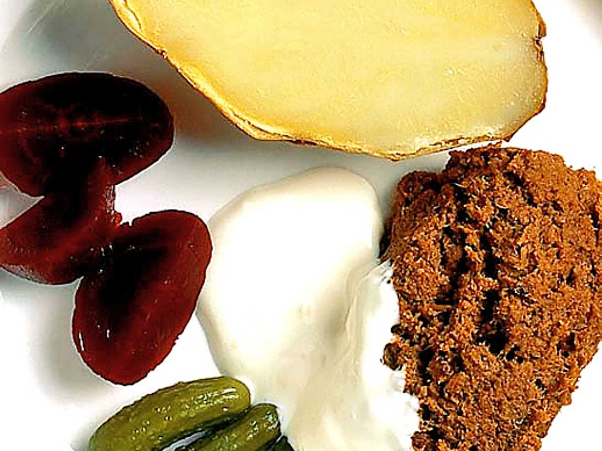 Tilltugg med getostkräm, honung och havtornsmarmelad