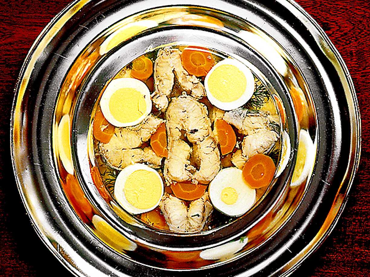 Ugnsbakad piggvar med blomkålspuré, äppelbrunoise, brynt smör och löjrom