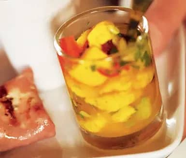 Ceviche med färsk frukt och pilgrimsmusslor