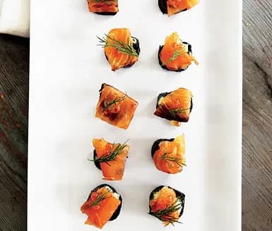 Laxtartar i noriblad