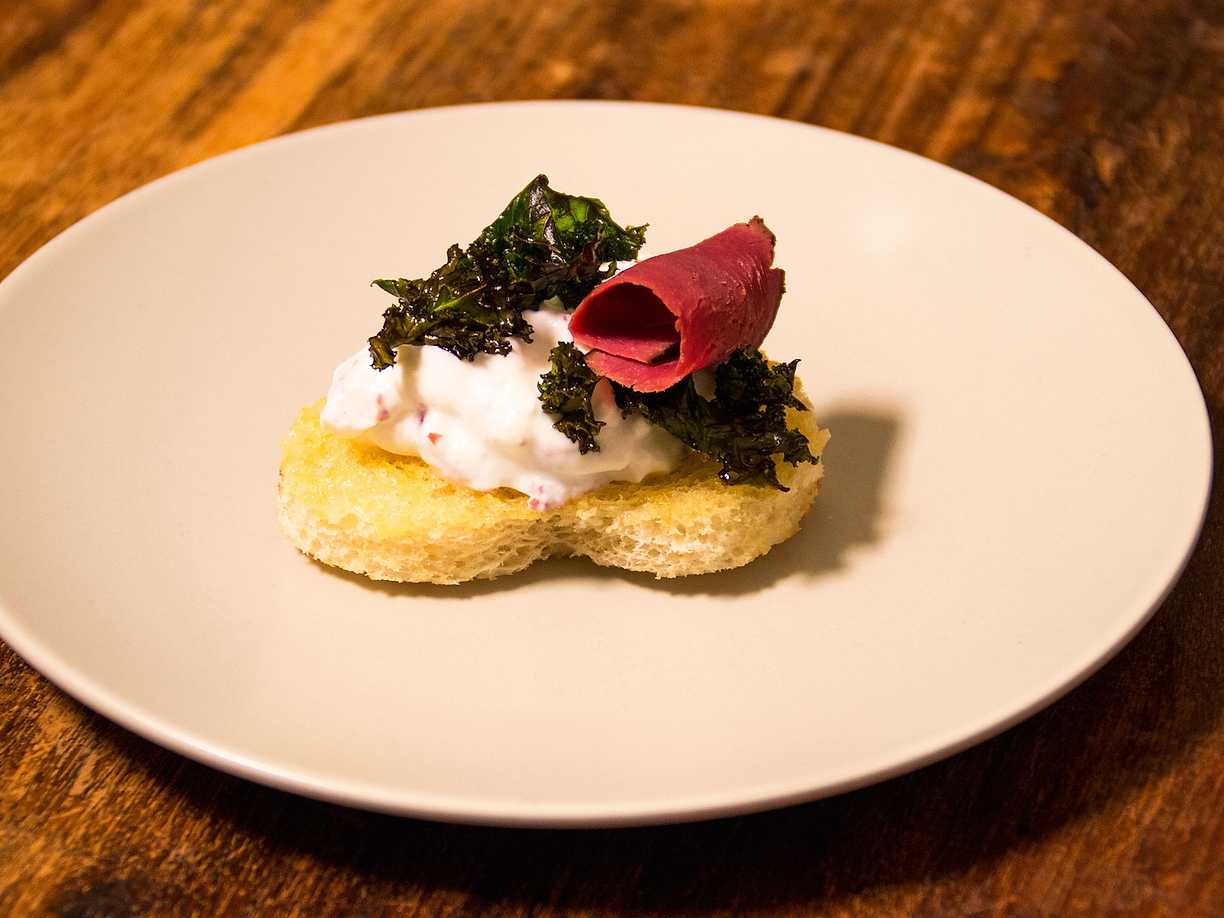 Crostini med rensteksröra och krasse