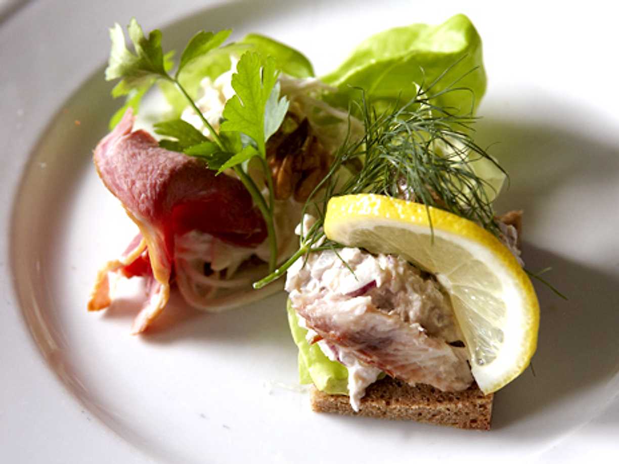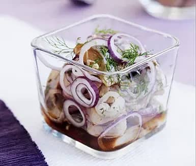 Matjessill med brynt smörkräm, brödkrisp och dill