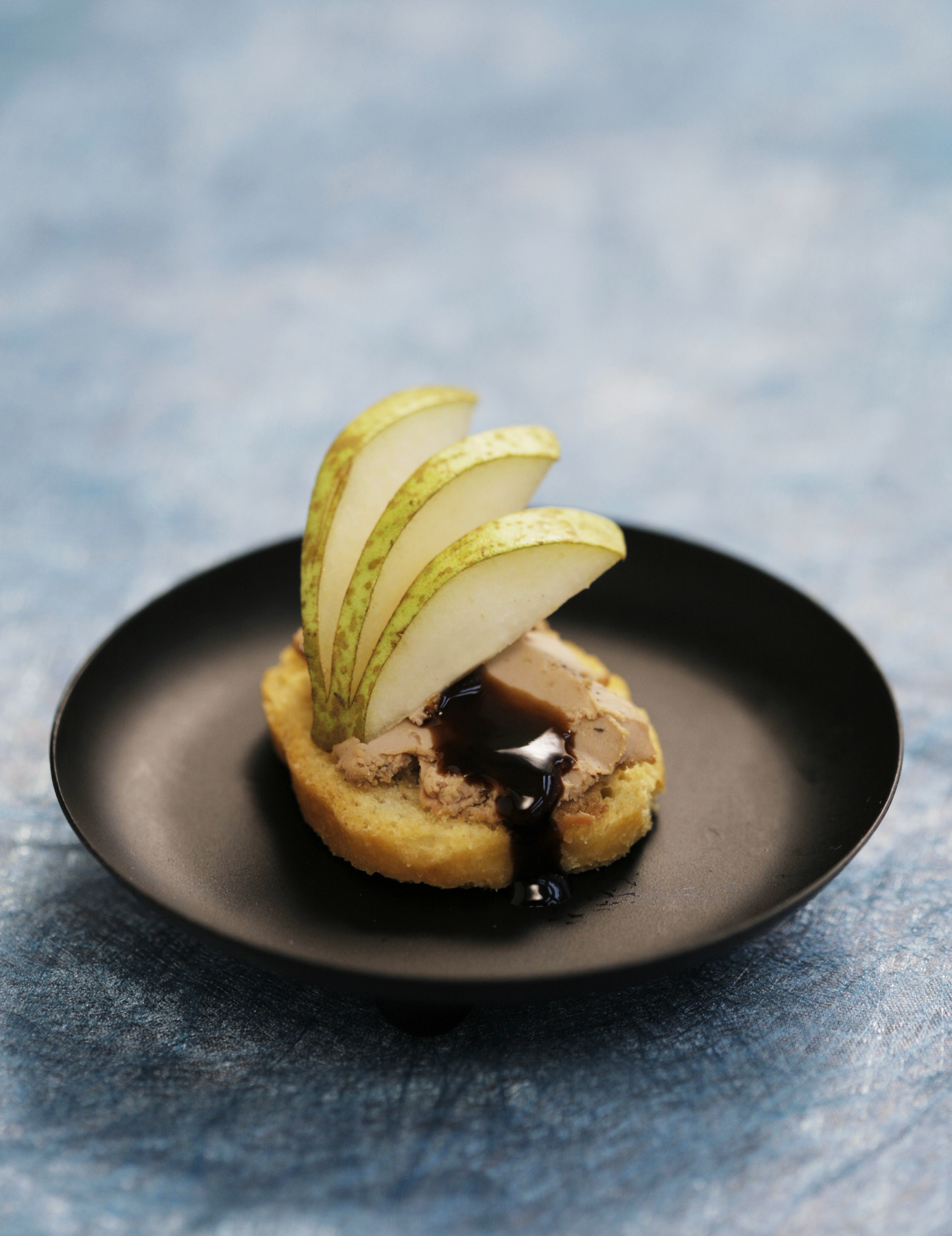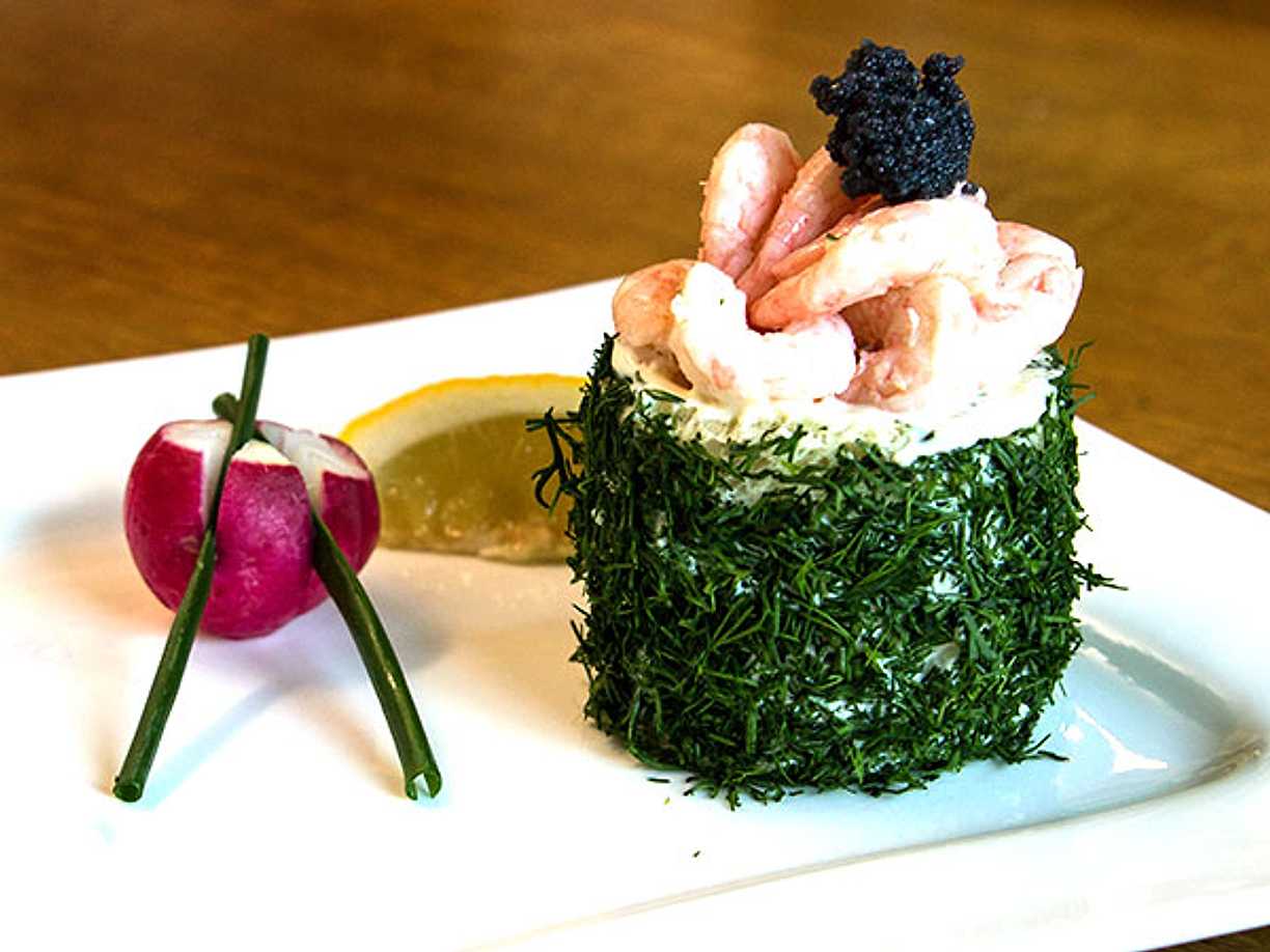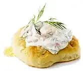 Crostini med citronkräm, löjrom och finskuren rödlök