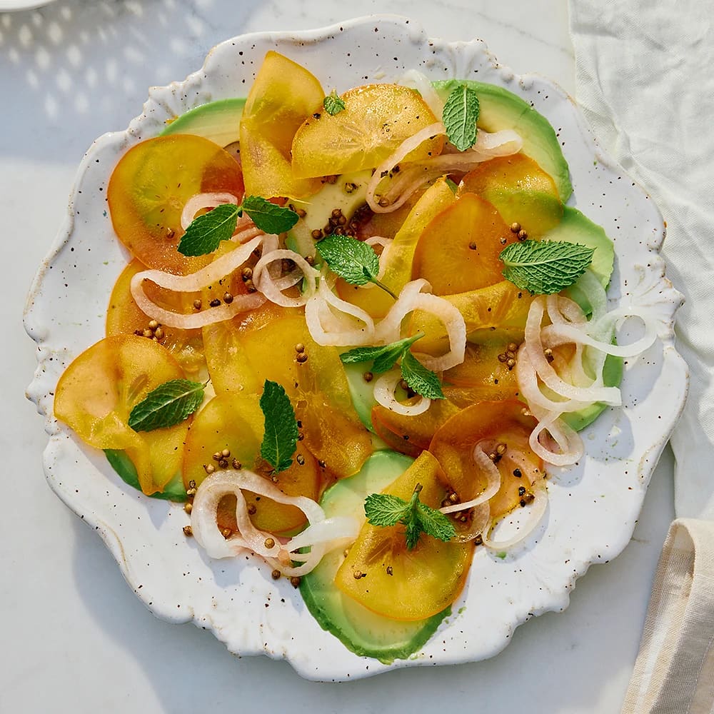 Persimon- och avokadocrudo