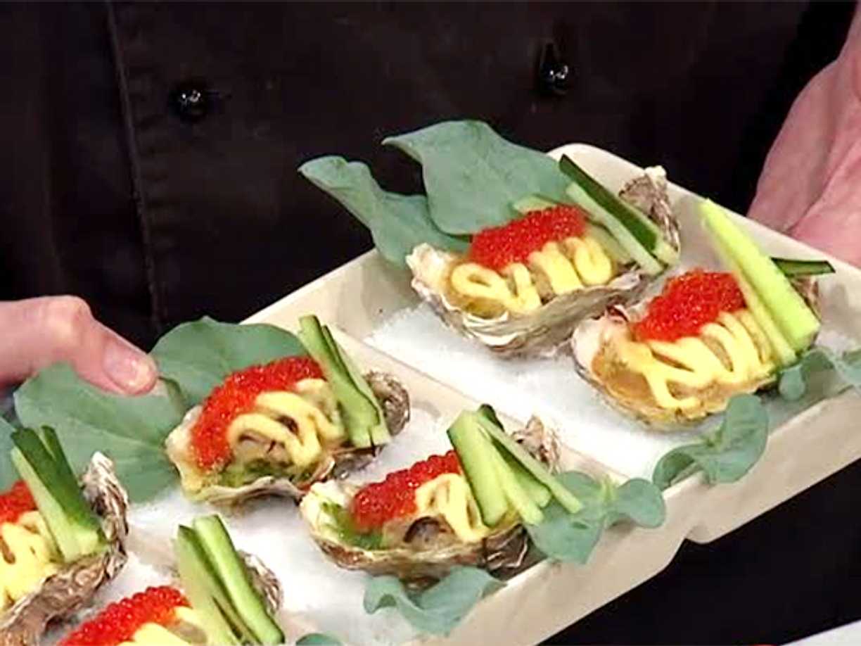 Gratinerade ostron med sojamajonnäs