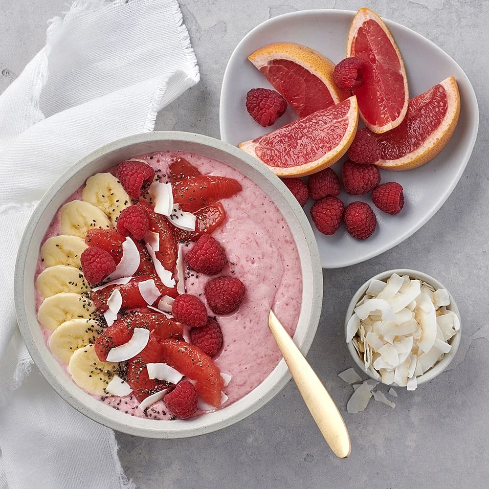 Frukostsmoothie med apelsin, jordgubbe och banan