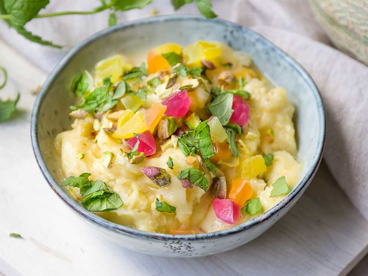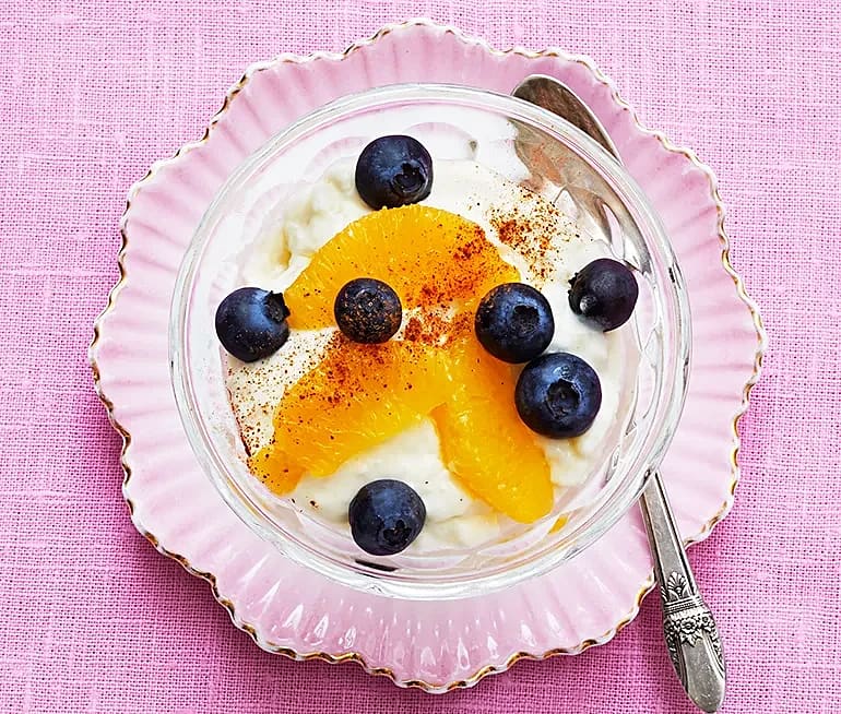 Mellismums med vaniljkvarg och frukt