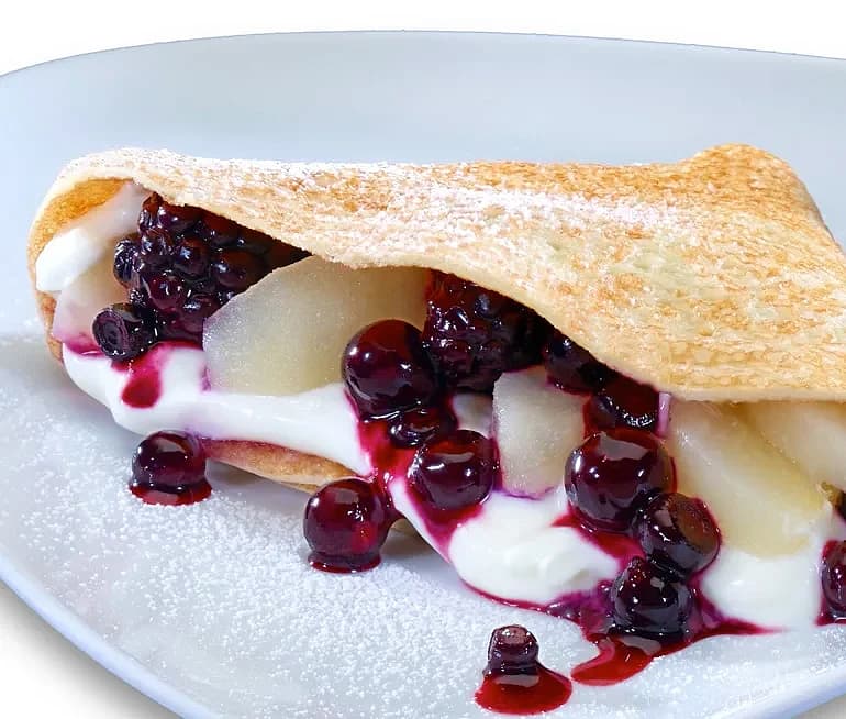 Pannkakor med frukt och färskost