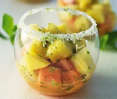 Färsk frukt med lime och mynta