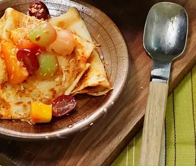 Kokospannkakor med frukt och bär