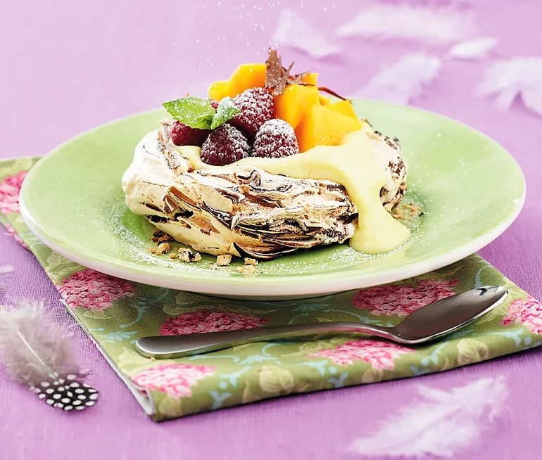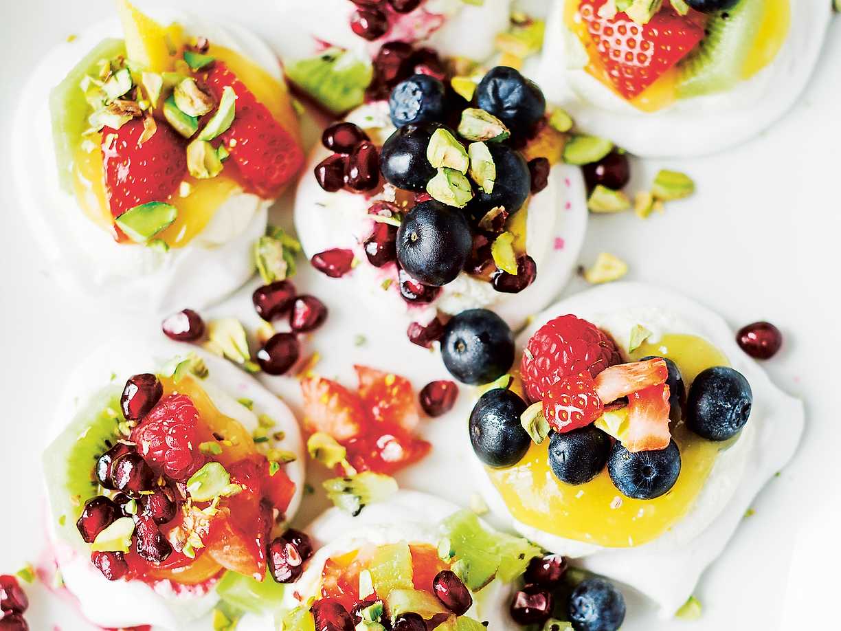 Minipavlovor med frukt och bär