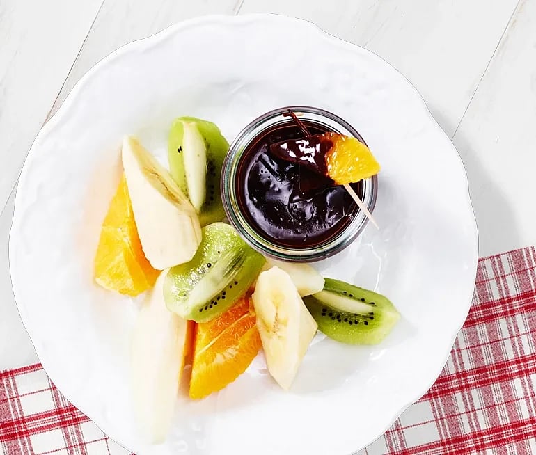 Frukt med chokladsås
