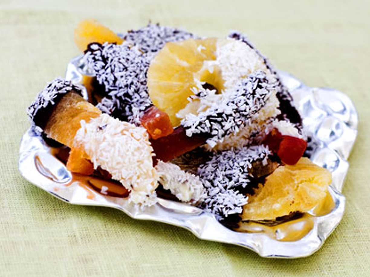 Färska frukter gratinerade med kokos och ingefära