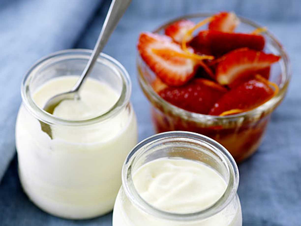 Frozen yoghurt med ananas, mango och citronmarinerade äpplen