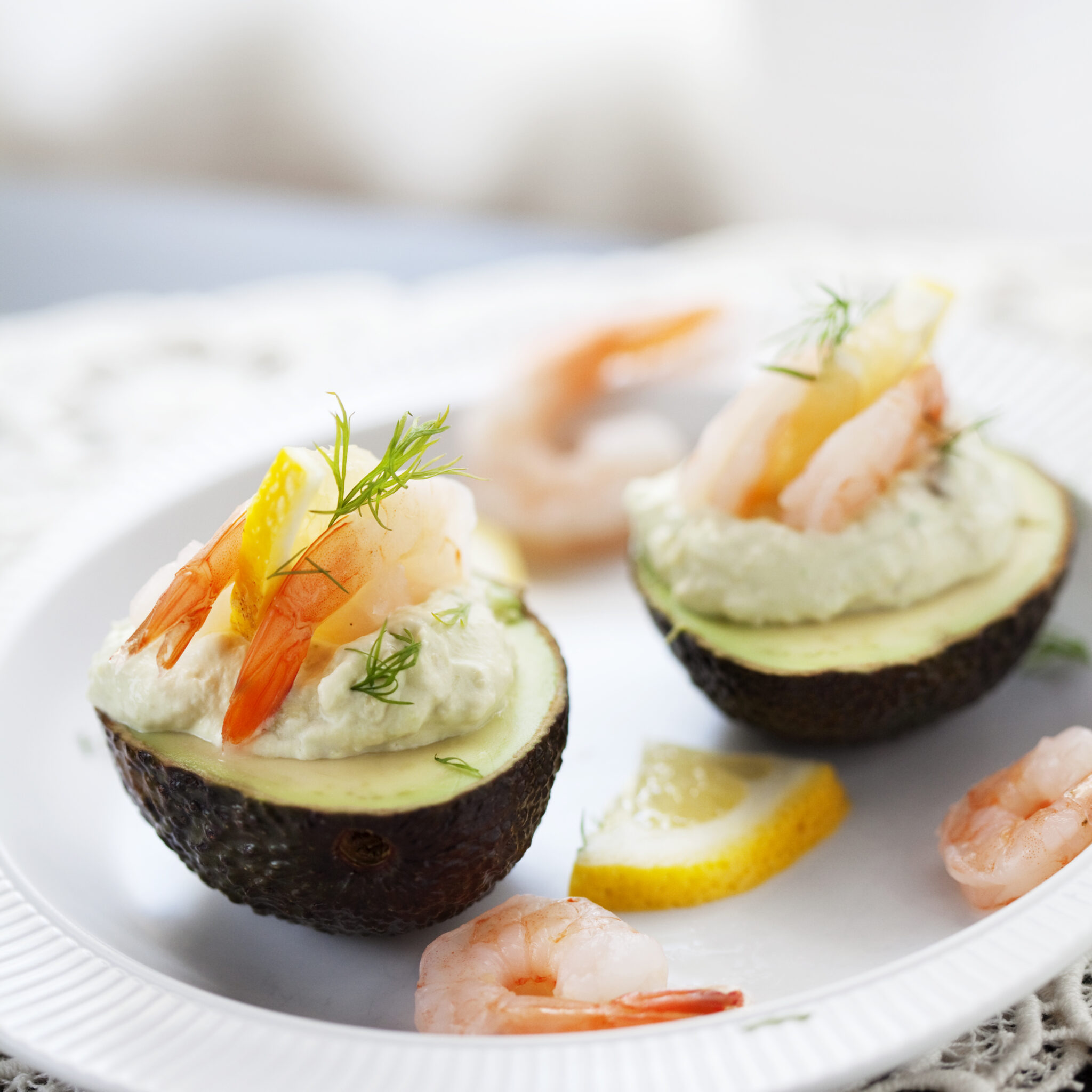 Fyllda avokadoskal med räkor och kaviar, "Ranchens räkado"