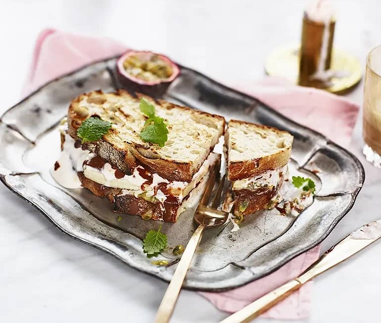 Croque Adrienne – grillad macka med hasselnötscrème, passionsfrukt och glass