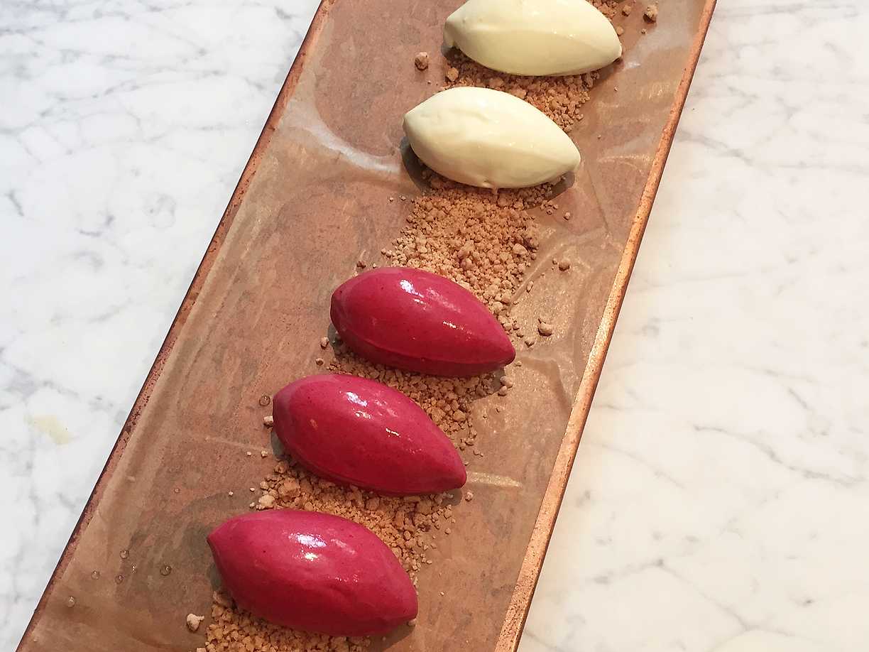 Den ljusa sidan mot den mörka sidan, chokladkula fylld med glass och bär