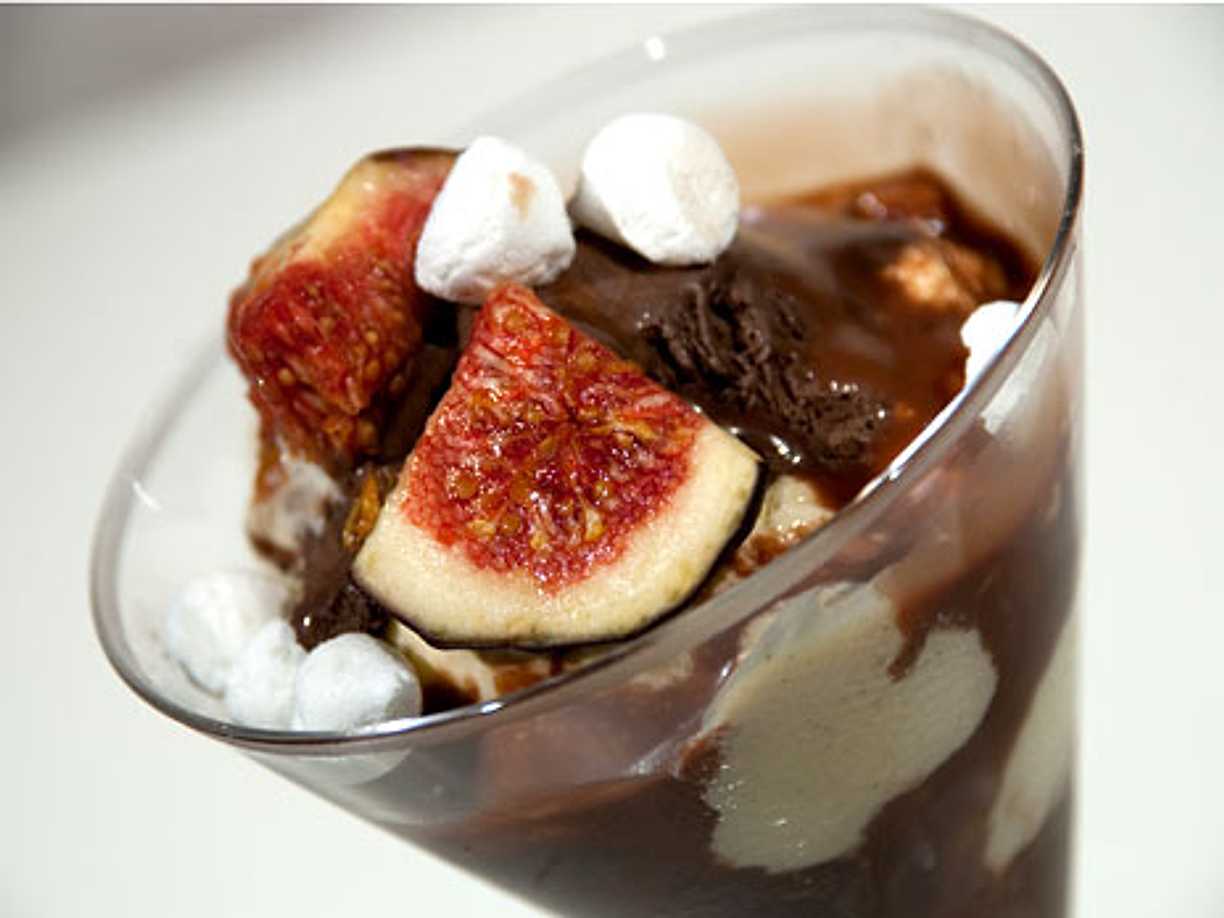 Glass med varm chokladsås