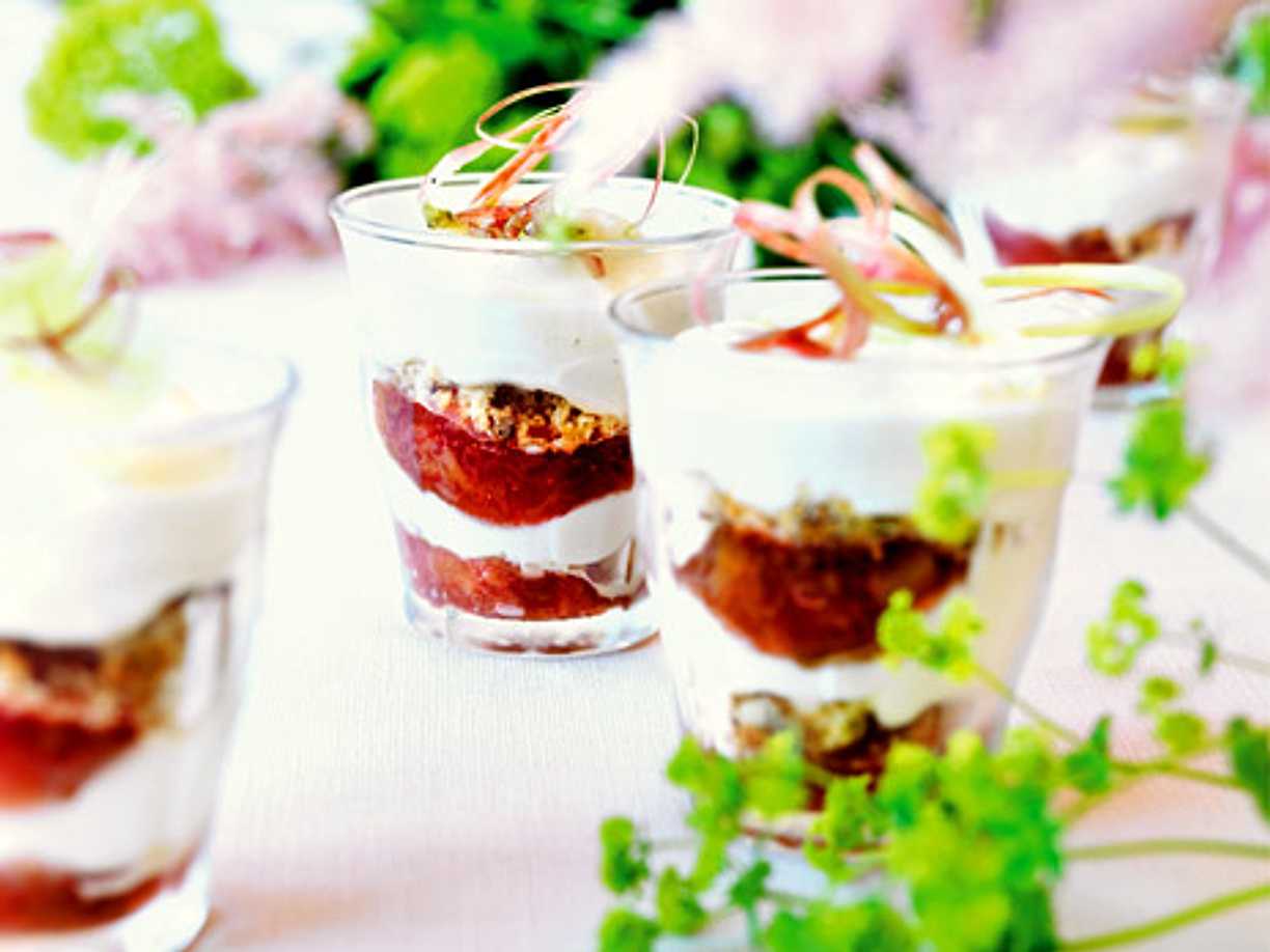 Rabarberkompott med vaniljkräm i glas