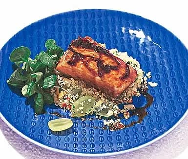 Glaserad lax med kryddig couscoussallad