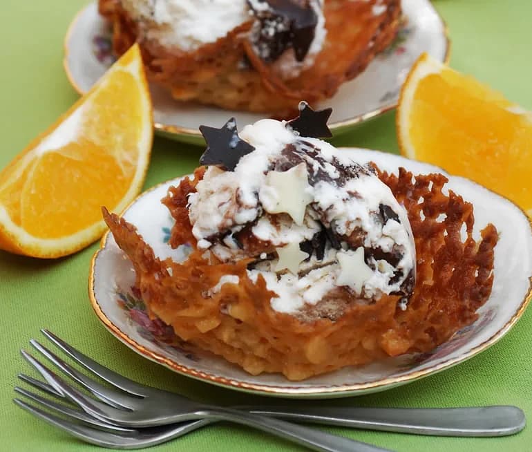 Toscakorgar med apelsinsmak fyllda med glass