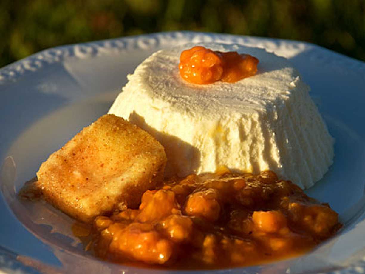 Friterad brieost med hjortron och glass