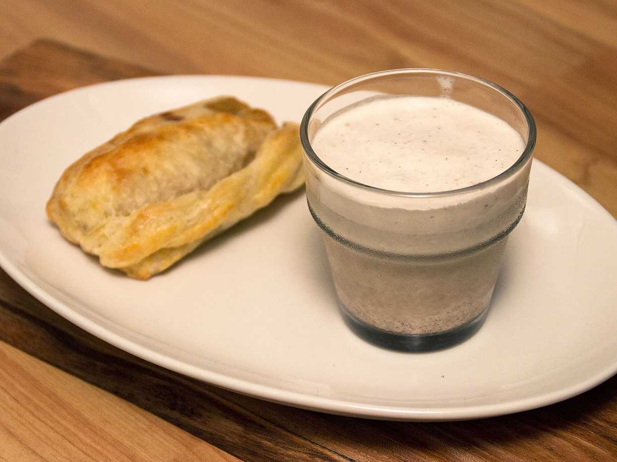Smördegsbakad brieost med glass och hjortronsylt