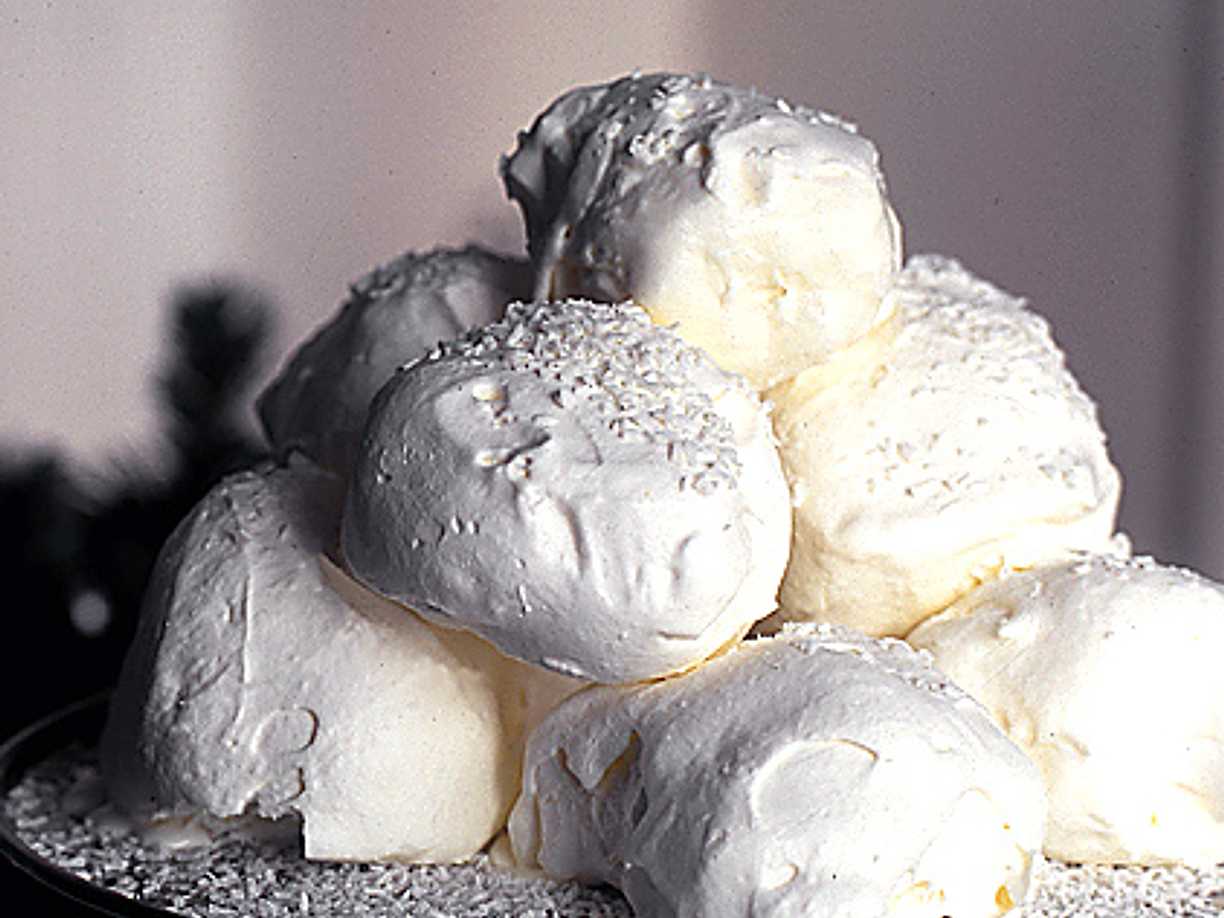 Snöbollar av glass med grädde och kokos