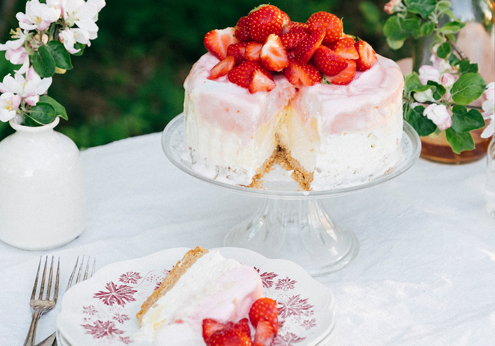 Glasstårta med jordgubbar och vit choklad